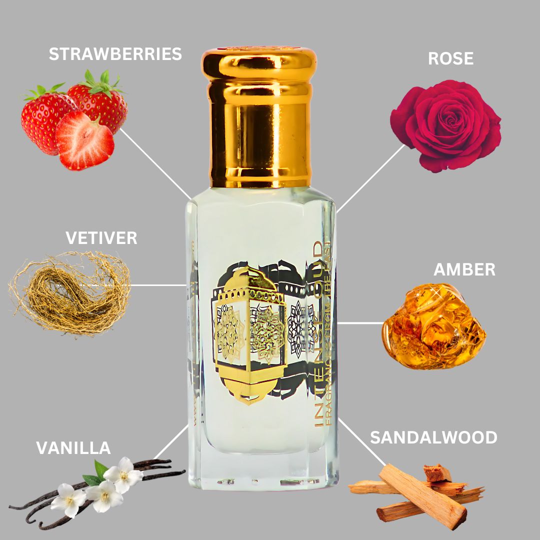 This fragrance opens with the sweet, fruity freshness of strawberries intertwined with the soft elegance of rose. The heart reveals a warm, earthy blend of amber and vetiver, adding depth and complexity. The base is a creamy, sensual mix of musk, sandalwood, and vanilla, creating a smooth and lasting finish. Perfect for those who enjoy a balanced floral-fruity scent with warm, woody undertones.